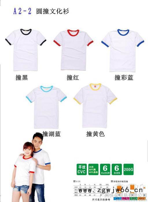 本公司供应撞色CVC圆领工作服订做,品牌快朵广告衫,型号A2-2。参数为:风格* 休闲,款式* 短袖,领子* 圆领,面料* 其它。质量保证,欢迎咨询洽谈。