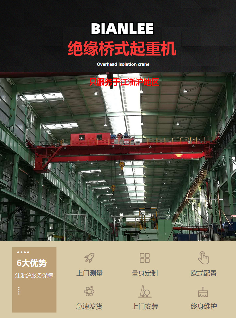 | 适用范围 | 适用于金工车间、装配车间、维修车间和各类仓库及料场等场合,也可用于冶金、铸造车间作辅助吊运、考虑防风 |