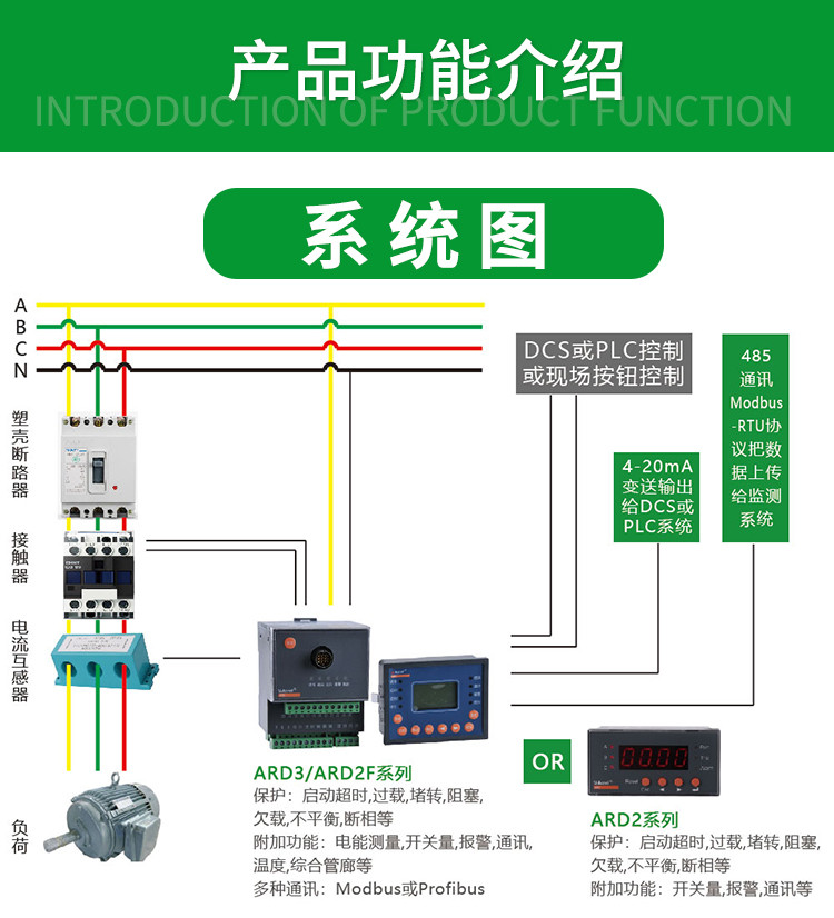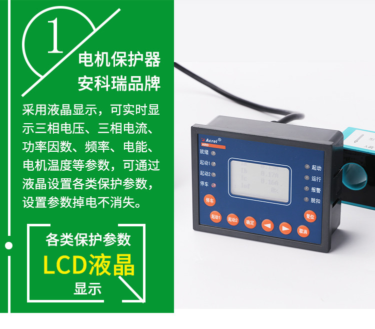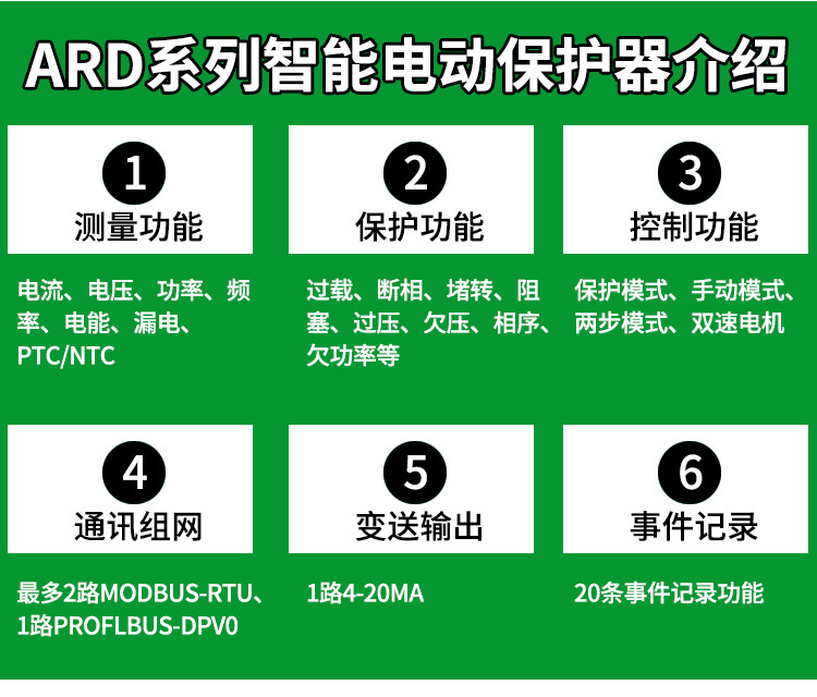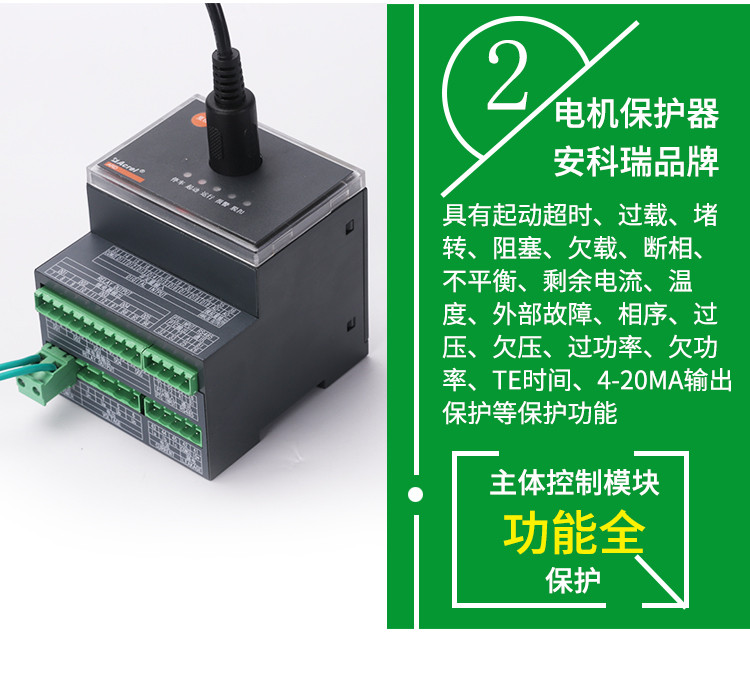 该系列低压电动机保护器,具有过载、断相、不平衡、欠载、接地/漏电、堵转等保护功能。可与接触器、电动机起动器等电器元件构成电动机控制保护单元,具有远程自动控制、现场直接控制、面板指示、信号报警、现场总线通信等功能。