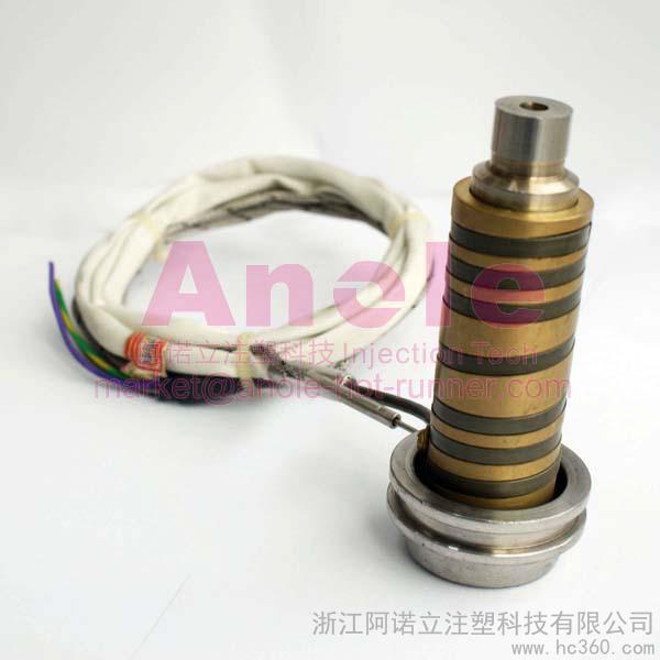 阿诺立热喷嘴的材质与众不同。除了选用**的材质外,还特别将主体,底座,浇口套都做了热处理,使热喷嘴的综合性能(耐磨、耐腐蚀、防变形、热传导等),阿诺立所有热嘴都采用德国**优质的加热圈,运用国际通用的 J 型热电偶,使探测的实际温度更**, 拥有快速优异的换色能力和适合注射工程塑料及阻燃改性塑料.阿诺立提供多系列标准喷嘴及其标准配件,喷嘴的金属件采用德国和意大利进口原材料。咀芯直通 产品表面留有水口料 表面留有圆形状浇口痕迹**的换色能力,使用于大型产品及小型高密度的工程塑料模具,针对HDPE或其它流动性极差的塑料时,推荐使用此系。能维持较高的浇口温度和防止过早冻结。浇口本身的压力降较小,能浇好地传递保压压力,并对注塑件补缩。可用于注射大型.长流程.厚壁和深腔的零件。喷嘴中熔体并不滞留,也适用于热敏感性塑料和着色塑料的更换。适用于快结晶速率的塑料(如 PA.POM及PET)和流动缓慢的塑料(如PC)等