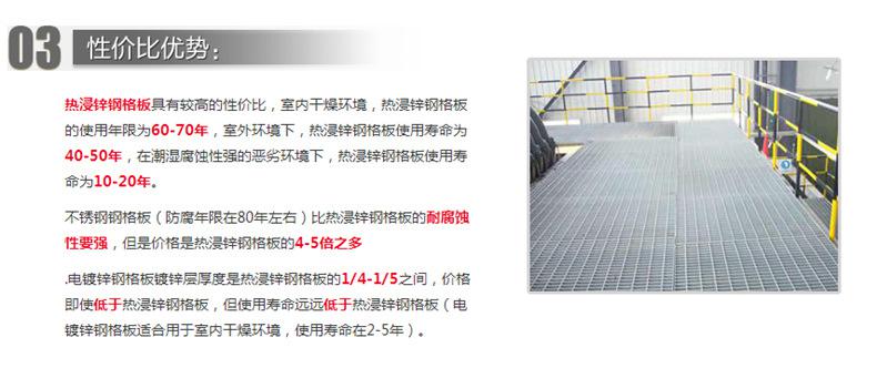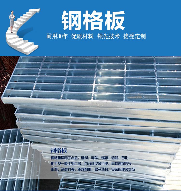 优点。钢格板已在国内外各行各业得到广泛应用,主要用作工业平台,梯踏板,扶栏,通道地板,铁路桥侧道,高空塔架平台,排水沟盖,井盖,道路隔栅,立体停