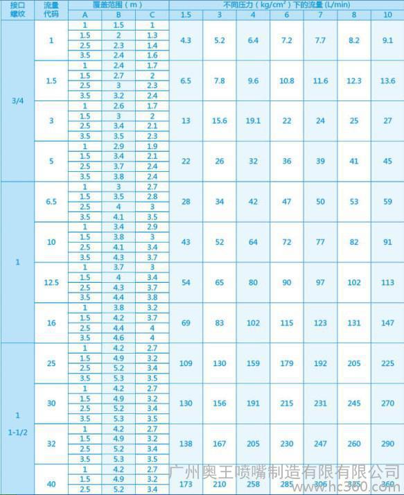 喷嘴型号 接口螺纹 流量代码 材质