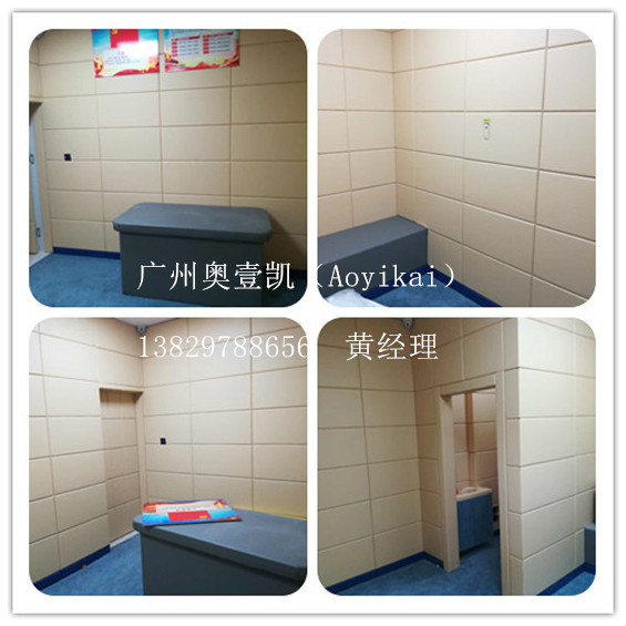 奥壹凯的防撞阻燃吸音材料专业为派出所审讯室、公安局办案区、纪检委谈话室、询问室、检察院讯问室、看守所关押室、交警大队讯问室、特审室、信息采集室、纪委审查室、禁毒支队、拘留所等执法部门量身打造集防撞、阻燃、吸音为一体的防自残、防磕碰的保护性墙面,能很好保护嫌疑人出现自残、撞墙自杀等行为。
