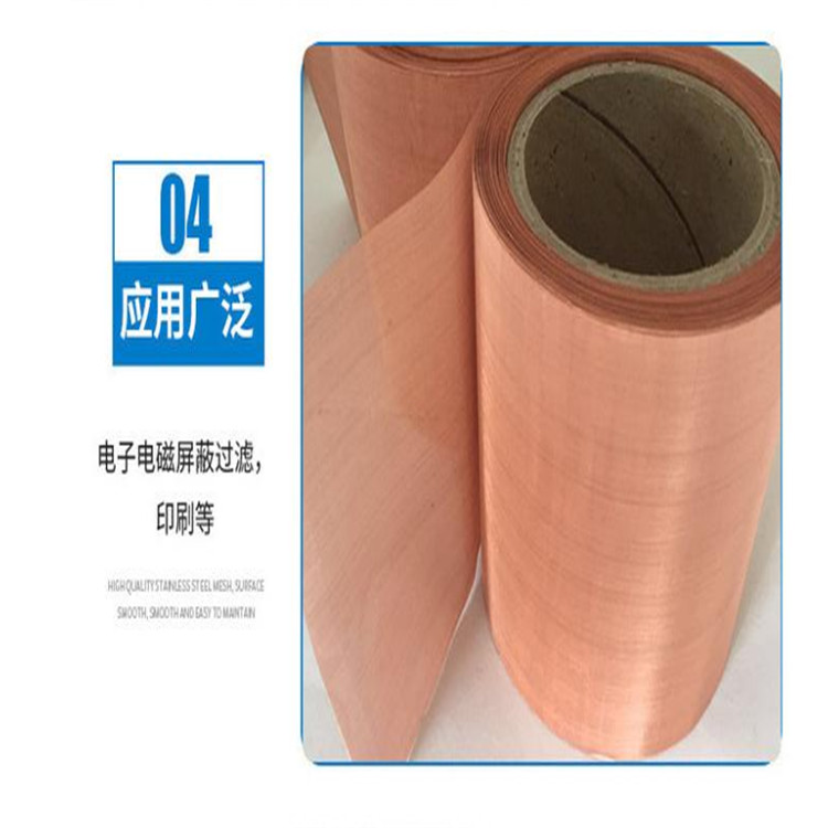 化学屏蔽铜网用途;电子显示屏,电视台广播通信,高科技防电磁干扰工程特性;无磁延展性差,传热快导电性,隔音性好,过滤电子束