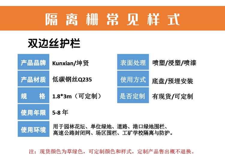 | 用途 | 增加隔离能力、防攀爬效果 |