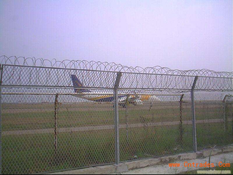 钢筋混凝土立柱金属网片防护栅栏由:钢筋混凝土立柱、金属网片及连接部件组成,防护高度1.8m。
