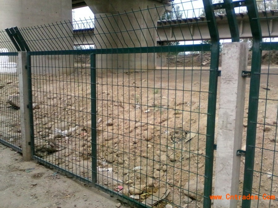 钢筋混凝土立柱金属网片防护栅栏由:钢筋混凝土立柱、金属网片及连接部件组成,防护高度1.8m。
