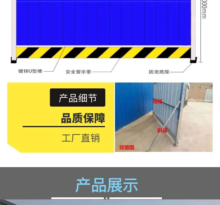 马路防风隔离围挡实体工厂产销 拓轩喷涂冲孔挡板喷涂冲孔挡板 蓝色彩钢围挡供货商