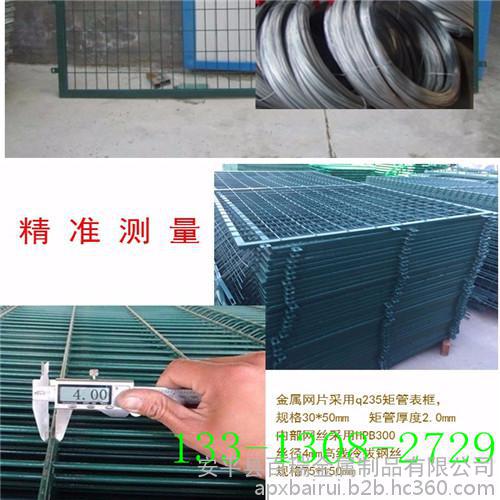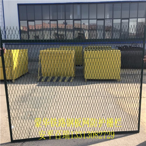 百瑞 专业生产铁路金属防护网工厂 高速公路铁路防护栅栏金属网|片 定做各种异形金属网片 京哈铁路防护网合作供应商,金属网片防护栅栏成本价格是由,钢丝、矩管、镀锌、浸塑、人工等费用构成的。金属网片防护栅栏的是一种框架结构的护栏网,主要应用于铁路、高速公路等。框架结构的对于施工方来说可以更快捷、简便的进行安装工作。金属网片防护栅栏的立柱一般采用125*125的混凝土钢筋立柱,与网片的连接件相连接,连接螺栓采用防盗功能的垫圈,防止被盗。适合大型工程的批量安装使用,作为铁路、公路隔离防护产品,防护高度不宜超过2米高,应与周围环境协调搭配,浸塑颜色优选绿色更好的融于环境。