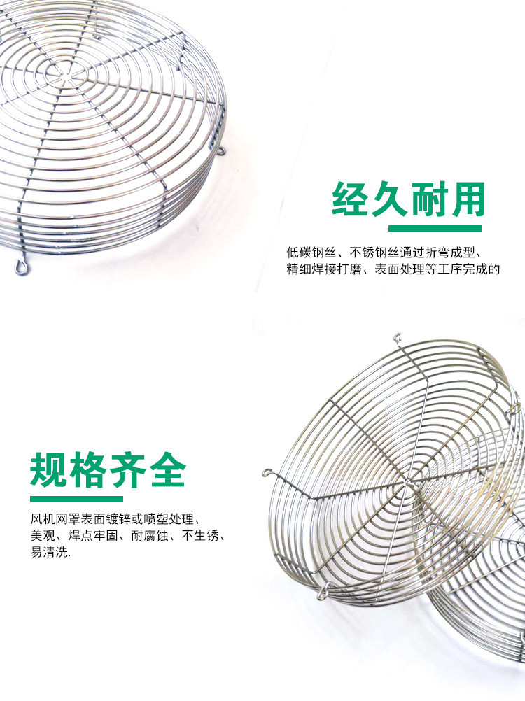 【风机罩特点】:线材制品、风机罩网、风机网,表面浸塑、 镀锌处理。形状美观、构造简洁、结构牢固、耐腐蚀、不生锈、易清洗。