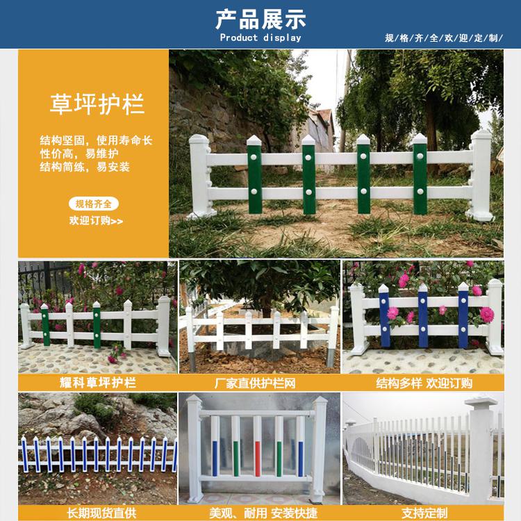 草坪护栏外型美观、色泽鲜艳、不褪色、坚固耐用,抗冲击强度高。耐候性好,耐高温、抗高寒、耐盐雾、抗潮湿、免维修、易清洗、使用寿命长、一次性投入,可享用终生。