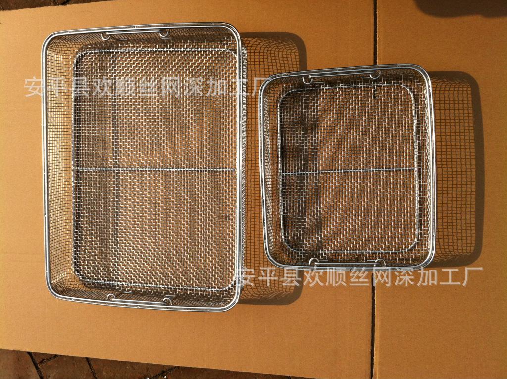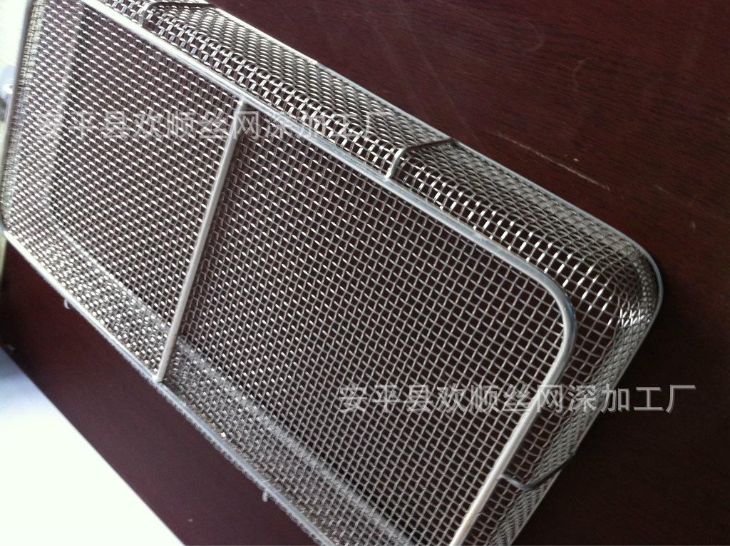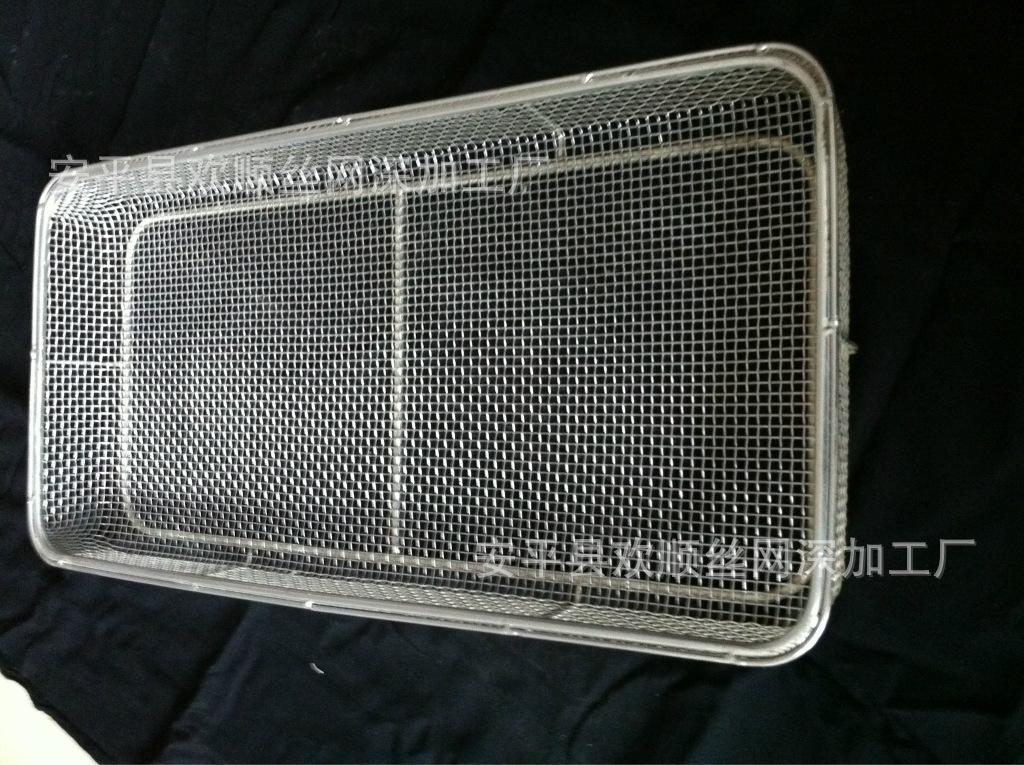 2、不锈钢消毒筐制造工艺:不锈钢轧花网、不锈钢电焊网、不锈钢编织网、不锈钢冲孔网、氩弧焊接等。