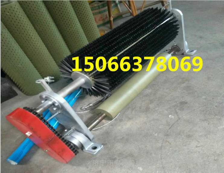 4.被动滚刷清扫器无需电源,实用、节能,刷丝经过特殊工艺加工制作,不粘料、不结垢,被动滚刷清扫器也适用于带钢卡的、硫化结合不理想的、花纹型的胶带。