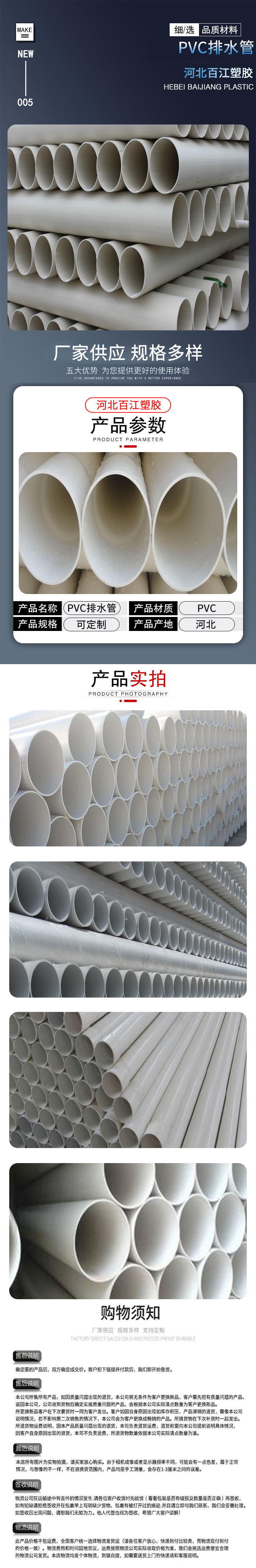 厂家批发 PVC-U排水管160 农田灌溉管 PVC管件 排污管 下水管 规格多样