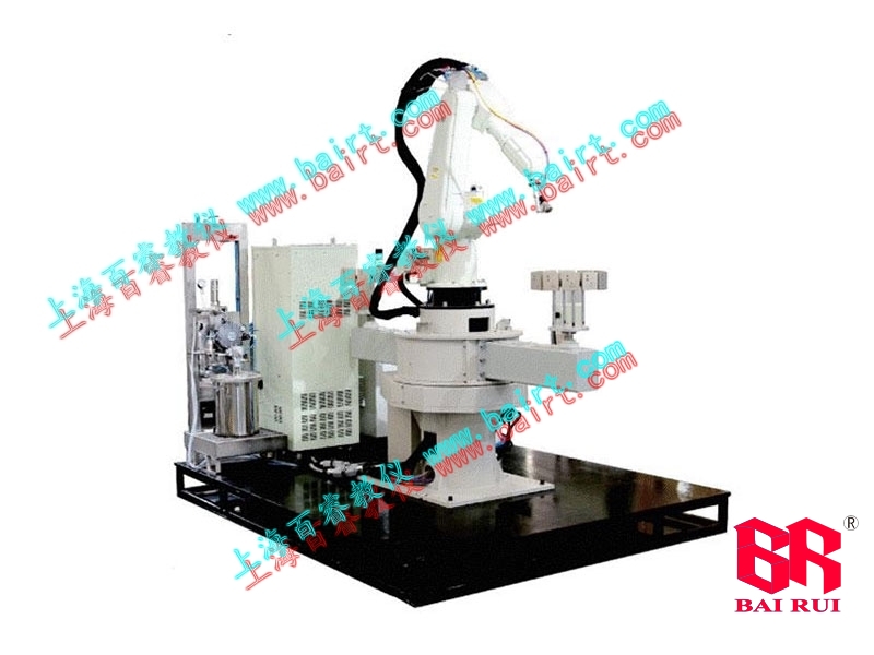 该系统主要有工业专用喷涂机器人系统、喷涂两工位旋转台、旋转台控制柜、机器人自动喷枪、压力装置、上料装置、机器人固定座、喷涂工件等组成。