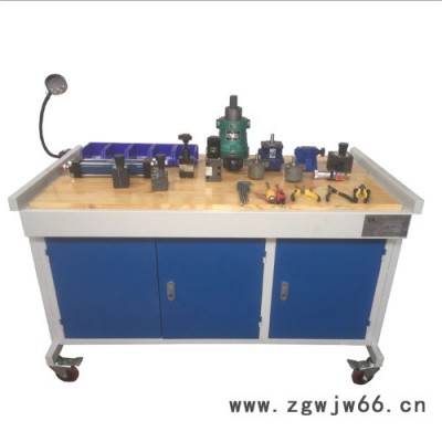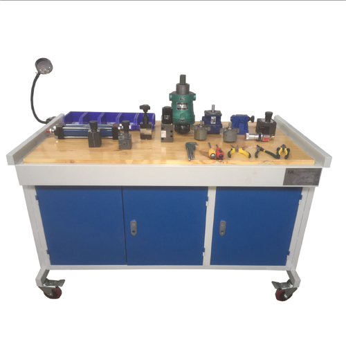 实训台采用金属框架制作,配有抽屉(带锁)尺寸为:1400mm×700mm×750mm台面上铺设防静电皮垫,同时台面上设有日光灯、小元器件盒。另外配备拆装用的所有工具(螺丝刀、内六角、呆扳手、手套等)