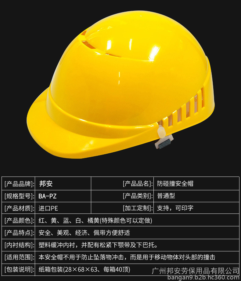 邦安PP防撞帽室内车间用防碰撞汽车生产轻便防磕碰汽配PE安全帽