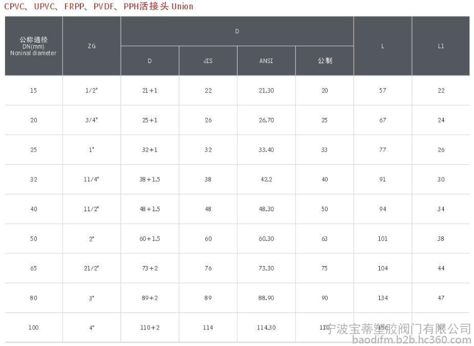 本公司生产的活接规格: