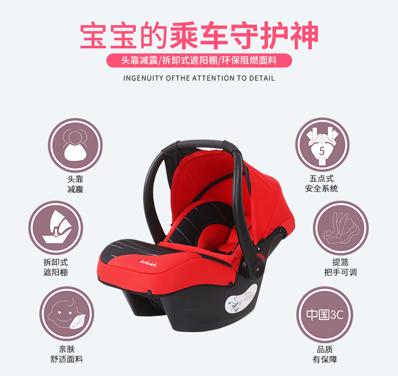 博聪儿童汽车提篮0-13个月汽车安全带固定五点式