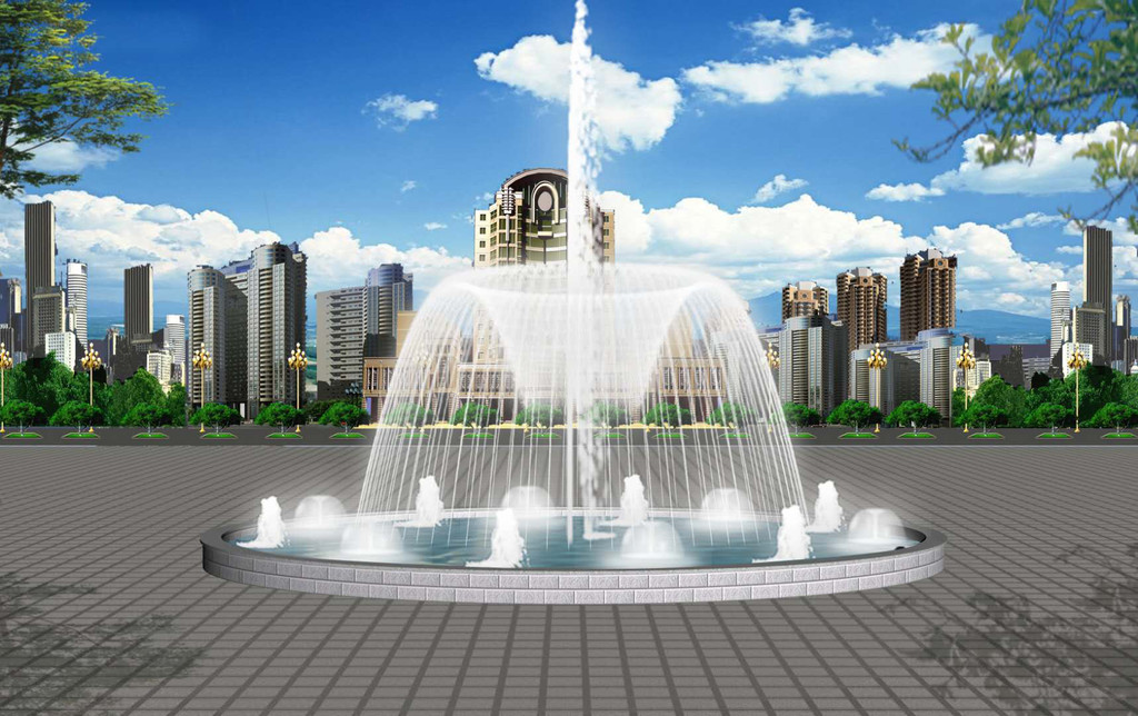 二是完全依靠喷泉设备人工造景。这类水景 在建筑领域广泛应用,发展速度很快,种类繁多,有音乐喷泉、程控喷泉、摆动喷泉、跑动喷泉、光亮喷泉、游乐趣味喷泉、超高喷泉、激光水幕电影等。