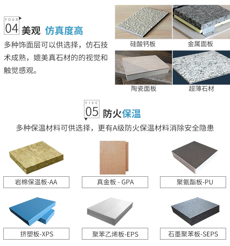 | 材质 | 岩棉、挤塑板、聚苯板、硅酸钙板、石材、金属 |