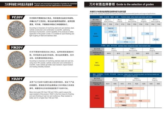 YW1 硬度:91.5° 密度:13° 抗弯强度:1290° 用途:不锈钢、普通合金钢的半精加工。