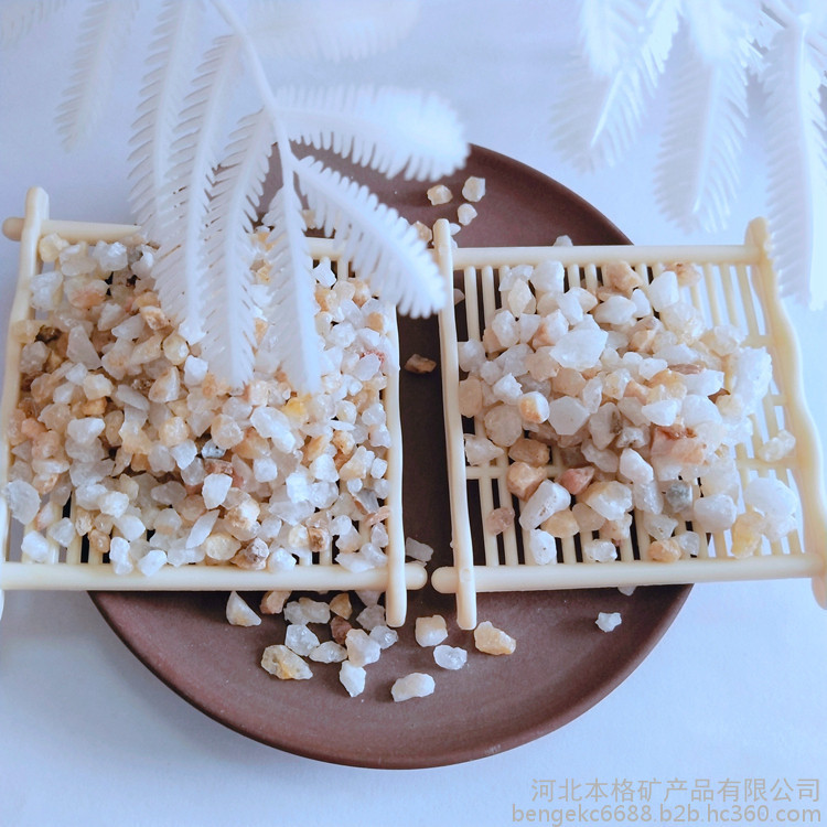 石英砂滤料是采用天然石英矿为原料,经破碎,水洗精筛等加工而成,目前是水处理行业中使用比较广泛、量比较大的净水材料,无杂质,抗压耐磨,机械强度高,化学性能稳定,截污能力强,效益高、使用周期长,适用于单层、双层过滤池、过滤器和离子交换器中,各项指标均达到(CJ/T43-2005)标准。石英砂滤料无杂质,抗压耐磨,机械强度高,化学性能稳定,截污能力强,效益高、使用周期长,适用于单层、双层过滤池、过滤器和离子交换器中,各项指标均达到标准。