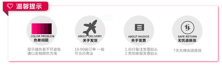 | 2、为了能更加方便、便捷的为您处理退货,请在寄回包裹中附加便签注明。 | |