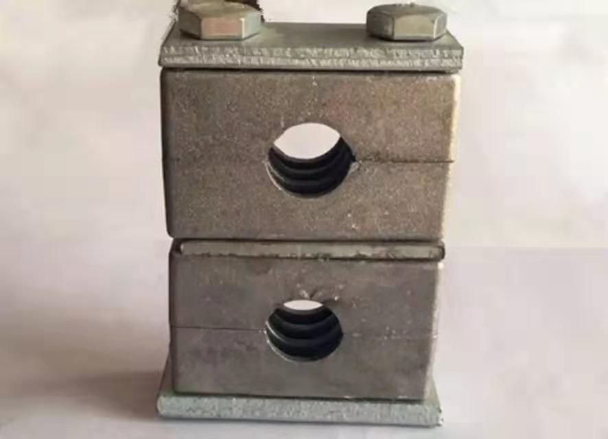 叠起装配,导轨可焊在基础上,或用螺钉固定,先装上下半个管夹身,放上需固定的管子再放上上半个管夹身,用螺钉固定,通过防松盖板防止它转动。然后安装第二个管夹,方法同上。