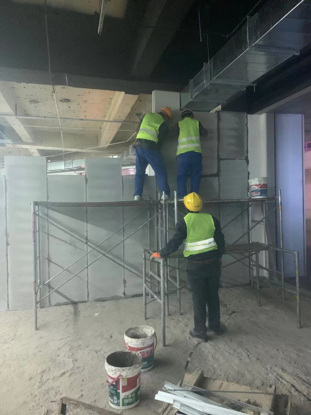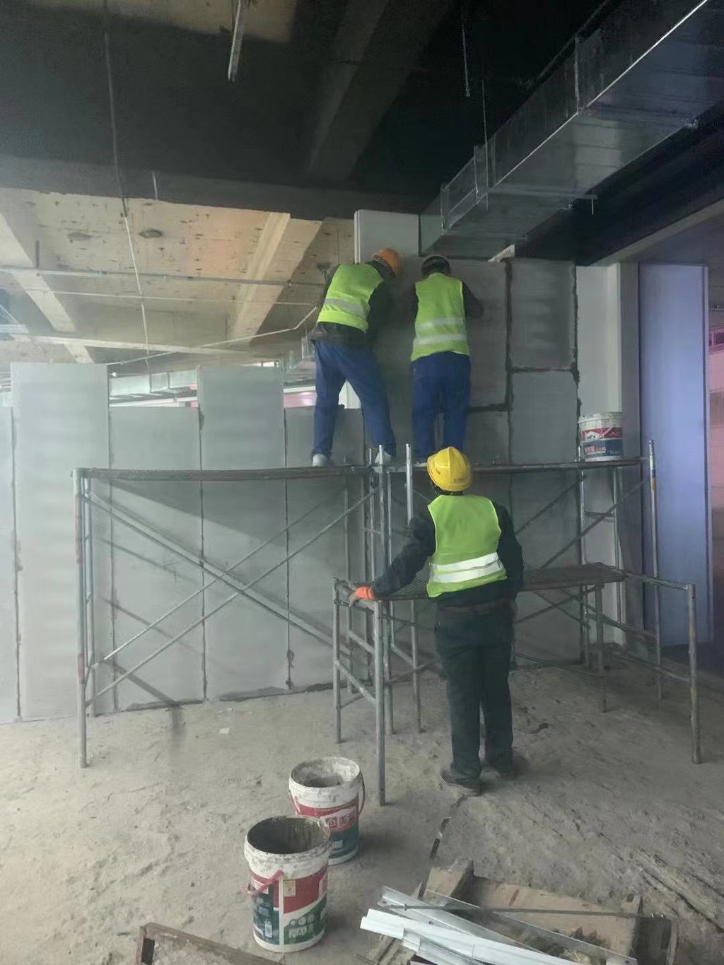 下面是轻质隔墙板安装现场实拍: