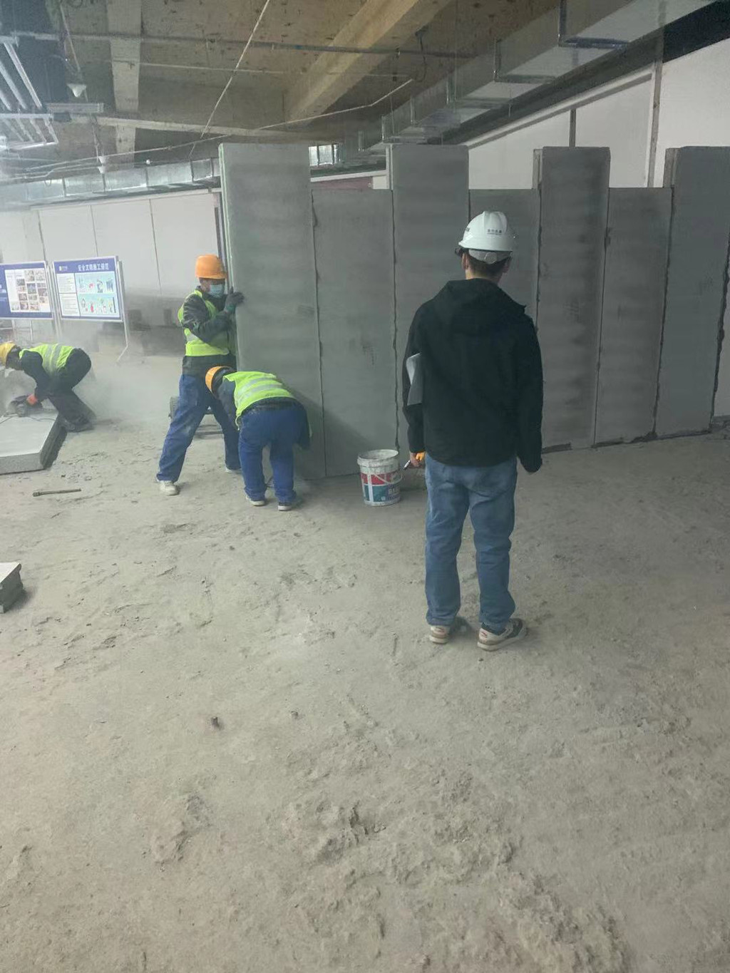 下面是轻质隔墙板安装现场实拍: