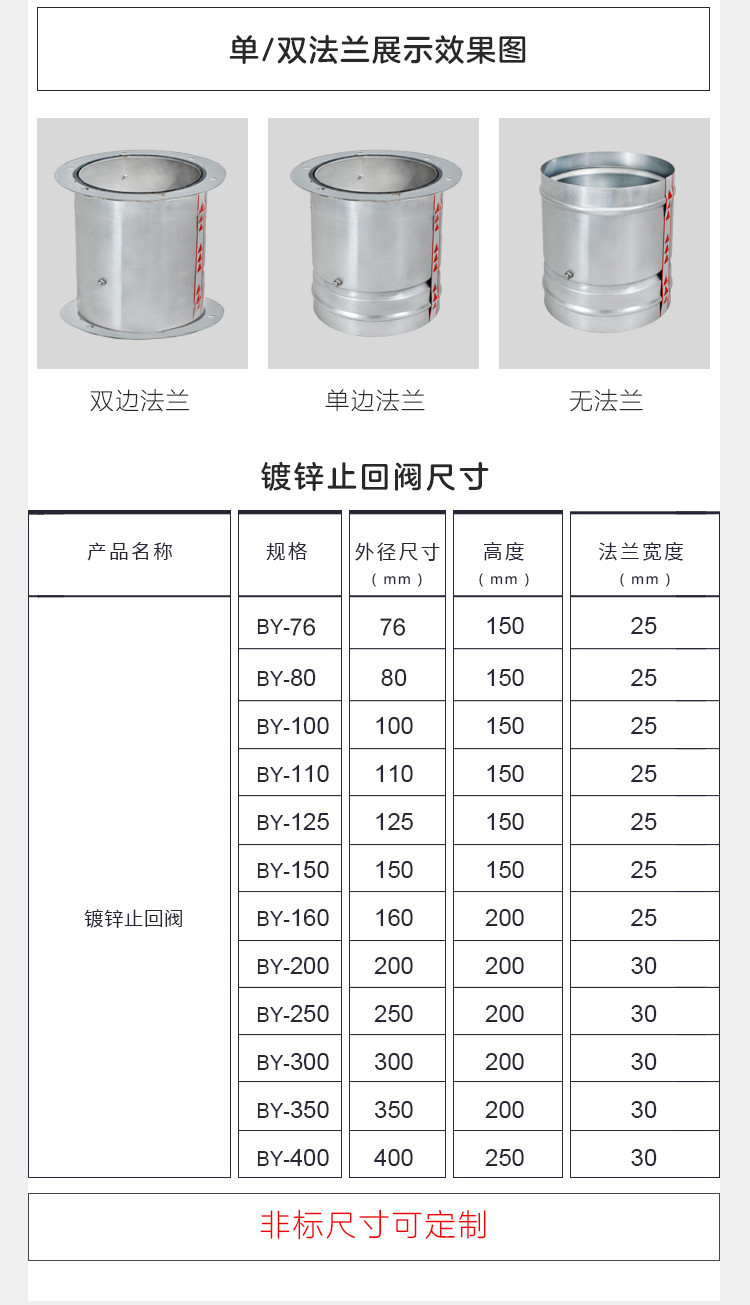 | 规格 | 直径80mm,直径100mm,直径110mm,直径125mm,直径150mm,直径160mm,直径200mm,直径250mm,直径300mm,直径350mm,直径400mm,尺寸定制 |