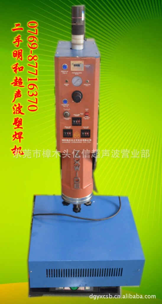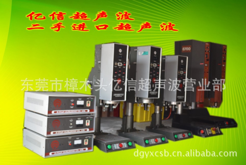 我公司有大量二手超声波塑料焊接机、二手高周波,常年有现机100~200台供客户选购。出售品牌有:瑞士灵高、台湾京华、长荣、香港UE、日本万事得、台湾三立、台湾明和、台湾一源、劲龙超声波,美国必能信8400、8700、8800,900、2000X、2000ea等,另有国产机众多机型,种类繁多,欢迎上门参观选购!