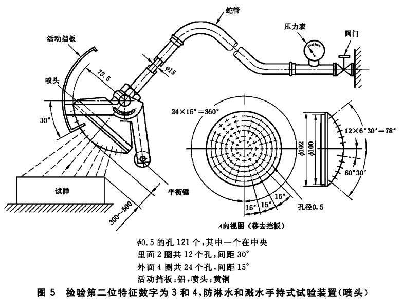 试验花洒头是一个替代摆管淋雨试验机进行防水等级试验的装置。IPX 3/4试验花洒头是用来测试不适合摆管淋雨试验机测试的产品。IEC60529:2001测试包含IPX3和IPX4的洒水和溅水防护试验。IPX 3/4试验花洒头是一个手持式的验证喷水和溅水防护的装置。水压可以通过装置上的流量控制阀进行调节得到想要的流速。
