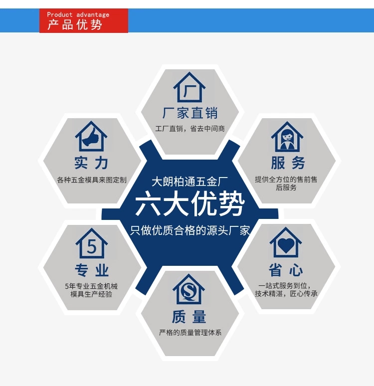五金模具由柏通机械五金制品厂提供。 柏通机械五金制品厂落于广东东莞大朗镇犀牛坡村美景西路1623号 ,模具设备的**,多年来,公司贯彻执行科学管理、创新发展、诚实守信的方针,满足客户需求。热情欢迎各界人士垂询洽谈,共创更加美好的未来。