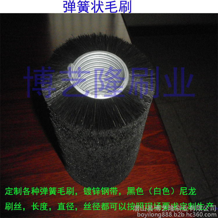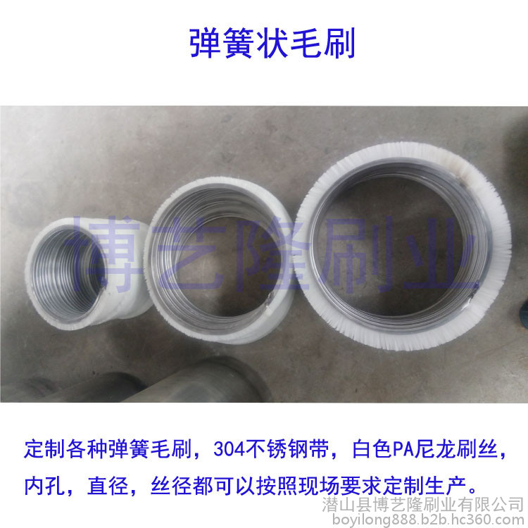 1、弹簧刷**是把刷丝嵌压在镀锌铁条或不锈钢条中,通过机器在特定的模具上一圈一圈缠绕成一定规格的弹簧状的毛刷。