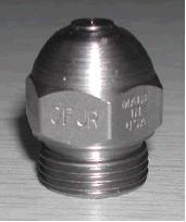 FN喷嘴,依靠独特的内部涡流叶片,只采用液体压力**可以产生非常细小的液滴,液滴的平均颗粒直径只有40 微米左右**小雾化粒径可达20 微米。喷雾效果可以和空气雾化喷嘴**。在7 巴压力下,喷雾形状为60°实心圆锥形,雾化极其均匀用单元组合式连接方式,加装过滤网,易于清洗。为了更好的雾化,建议喷嘴的入口压力在5 巴以上。