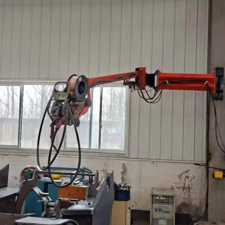 1、焊接焊机空间悬臂-吸尘臂适合大型产品焊接,适合高空焊接作业,在空间自由旋转升降折叠,例如:车架焊接、油罐焊接、钢架焊接等,已经普遍推广值得尝试使用,灵活、髙效、方便,真可谓是焊接助力手。前端搭载二氧化碳送丝机,后端固定于厂房立柱,悬臂工作范围覆盖面积大,从地面至3米左右高空任意升降,臂长支持2米-10米的大半径,可画弧度210度无死角焊接工作