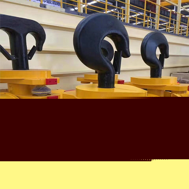 吊钩,是起重机械中常见的一种吊具。吊钩常借助于滑轮组等部件悬挂在起升机构的钢丝绳上。吊钩按形状分为单钩和双钩;按制造方法分为锻造吊钩和叠片式吊钩。单钩制造简单、使用方便,但受力情况不好,大多用在起重量为80吨以下的工作场合;起重量大时常采用受力对称的双钩。叠片式吊钩由数片切割成形的钢板铆接而成,个别板材出现裂纹时整个吊钩不会破坏,安全性较好,但自重较大,大多用在大起重量或吊运钢水盛桶的起重机上。吊钩在作业过程中常受冲击,须采用韧性好的**碳素钢制造。