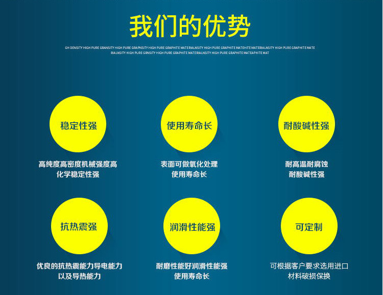 (1)耐高温性石墨的熔点为3850±50℃,即使经超高温电弧灼烧,重量的损失很小,热膨胀系数也很小。石墨强度随温度提高而加强,在2000℃时,石墨强度提高一倍。(2)导电、导热性石墨的导电性比一般非金属矿高一百倍。导热性超过钢、铁、铅等金属材料。导热系数随温度升高而降低,甚至在极高的温度下,石墨成绝热体。石墨能够导电是因为石墨中每个碳原子与其他碳原子只形成3个共价键,每个碳原子仍然保留1个自由电子来传输电荷。(3)润滑性石墨的润滑性能取决于石墨鳞片的大小,鳞片越大,摩擦系数越小,润滑性能越好。(4)化学稳定性石墨在常温下有良好的化学稳定性,能耐酸、耐碱和耐有机溶剂的腐蚀。(5)可塑性石墨的韧性好,可碾成很薄的薄片。(6)抗热震性石墨在常温下使用时能经受住温度的剧烈变化而不致破坏,温度突变时,石墨的体积变化不大,不会产生裂纹。
