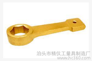 同时铝铜合金防爆工具是用贵重稀有金属合成、熔炼、锻造而制成工具后,表面呈黄色。工作面硬度HRC25°以上,抗拉强度δ b> 75-85kgf/mm,其它技术指标全部达到国外同类产品先进水平。在易燃气体乙烯(浓度7.8%)空间连续使用均确保安全,冲(撞)击、摩擦、落锤均不产生火花**。