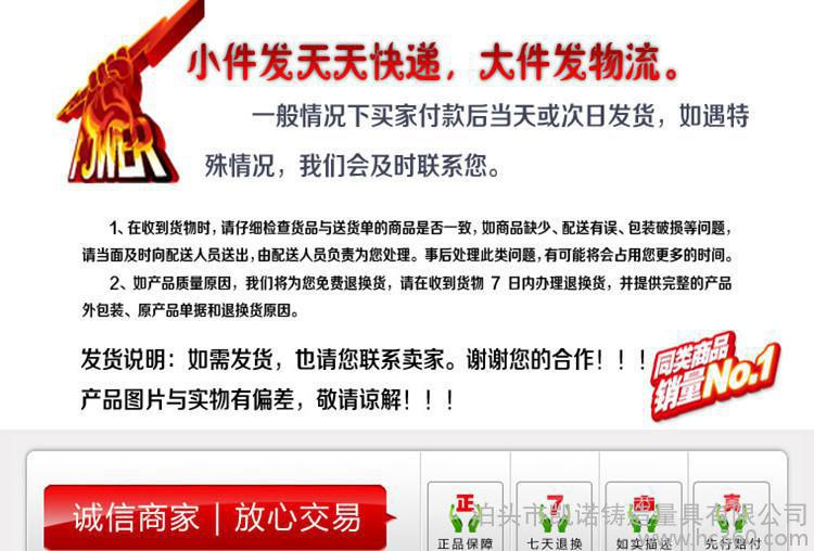 电话:0317-8326336 传真:0317-8287089 手机:13931732545 QQ:2298459281各位买家请注意:铁石类量具因重量不等,故产品邮费没办法设定,客户在购买前与卖家联系,商议运费,谢谢合作!如商品图片与实物略有偏差,敬请谅解!!