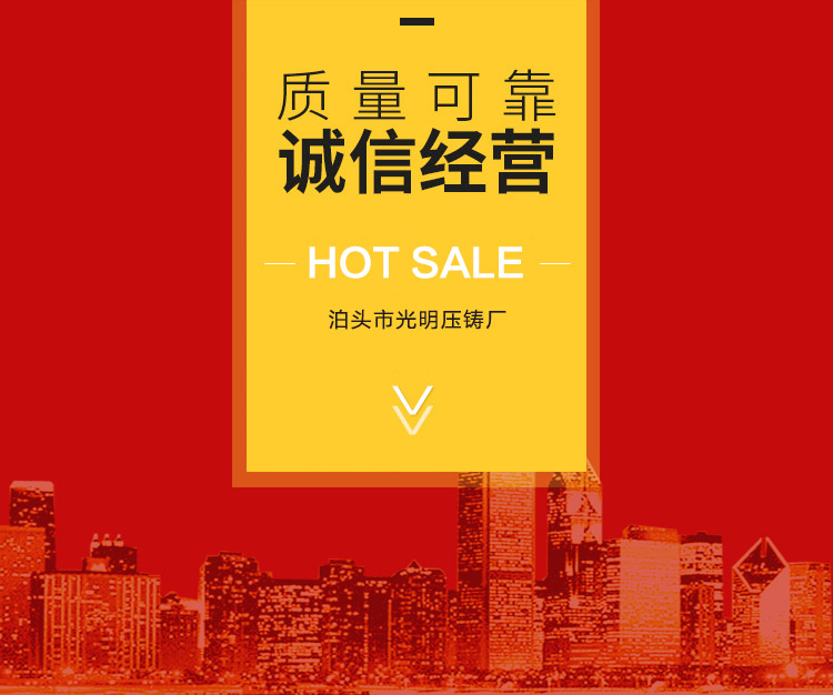 泊头市光明压铸厂始建于1988年,是集模具设计,制造和加工锌、铝压铸件的专业生产厂家。十多年来,