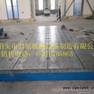 泊头市君旭机械设备制造有限公司精铸AAA级铸铁平板,是一家从事多年铸铁平板设计、生产、销售于一体的经验之商;开发全部采用CAD技术。我公司生产的铸铁平板材质采用HT200-300,硬度均控制在HB170-240之间,任务面精度均采用人工刮研,刮削而成,不论质量、板面厚度、精度等级、“铸铁平台精度等级有0、1、2、3、级及精刨,铸铁平台制成筋板式和箱体式,工作面有长方形、正方形或圆形。工作面采用刮削工艺,工作面上可加工V形、T形、U形槽和圆孔、长孔等。 铸铁平平台规格:(特殊规格可以按用户要求设计生产)①100mm×200mm-------------400mm×400mm(本规格适用于研磨压砂平板)精度为0级、1级、2级。 ②400mm×600mm-------------1500mm×2500mm(本规格适用于人工刮研平板)精度为1级、2级、3级。 ③1500mm×3000mm----------2000mm×3000mm(本规格适用于人工刮研平板)精度为2级、3级、精刨。 ④2000mm×4000mm----------3000mm×10000mm/4000mm×8000mm精度为3级和精刨。”都是经过专业质检,一把抓制作**平板的量具名城