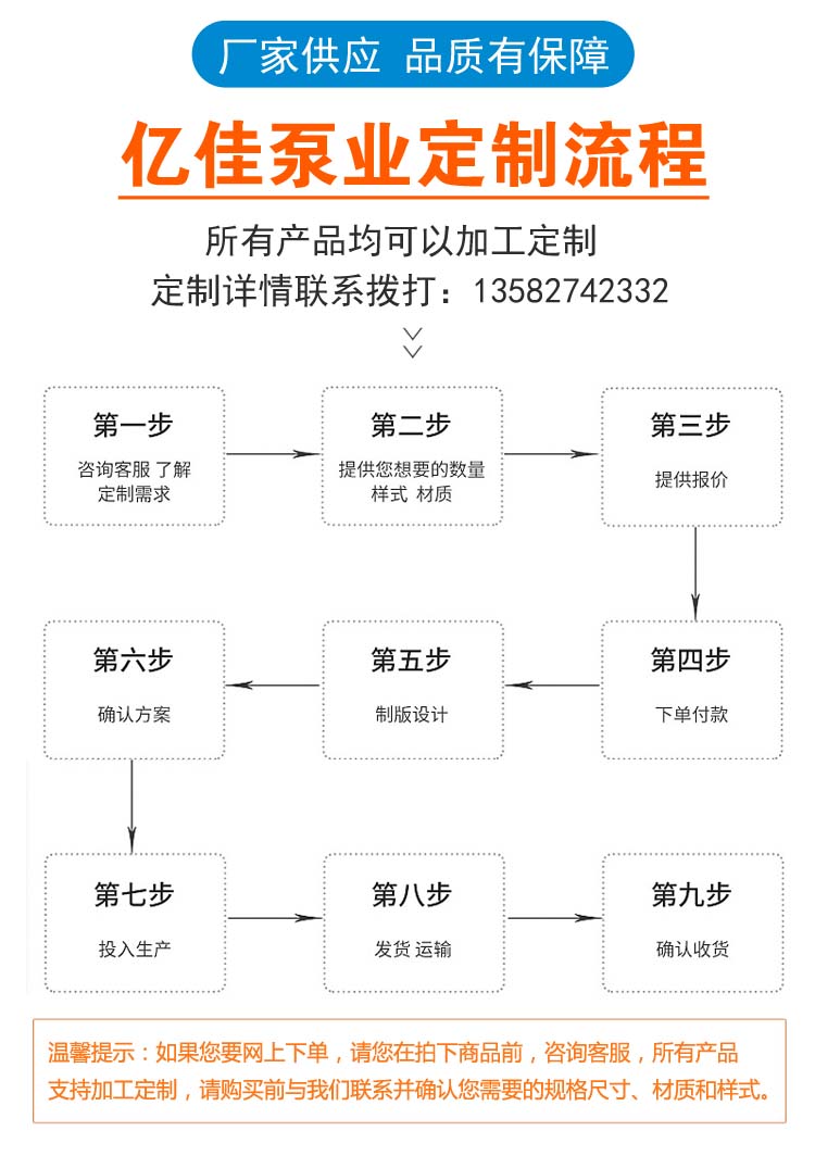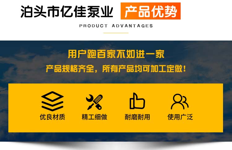 泊头市亿佳泵业有限公司位于河北省泊头市,地理位置优越,北依京、津、东临渤海、京沪铁路、石黄高速、京福高速、交通便利。我公司是一家集生产、制造、、设计、安装于一体的泵业设备制造企业,并致力于新式泵业设备成品,以现代化发展需求提升水准,依托良好良好的区位优势和产业底蕴发展壮大。