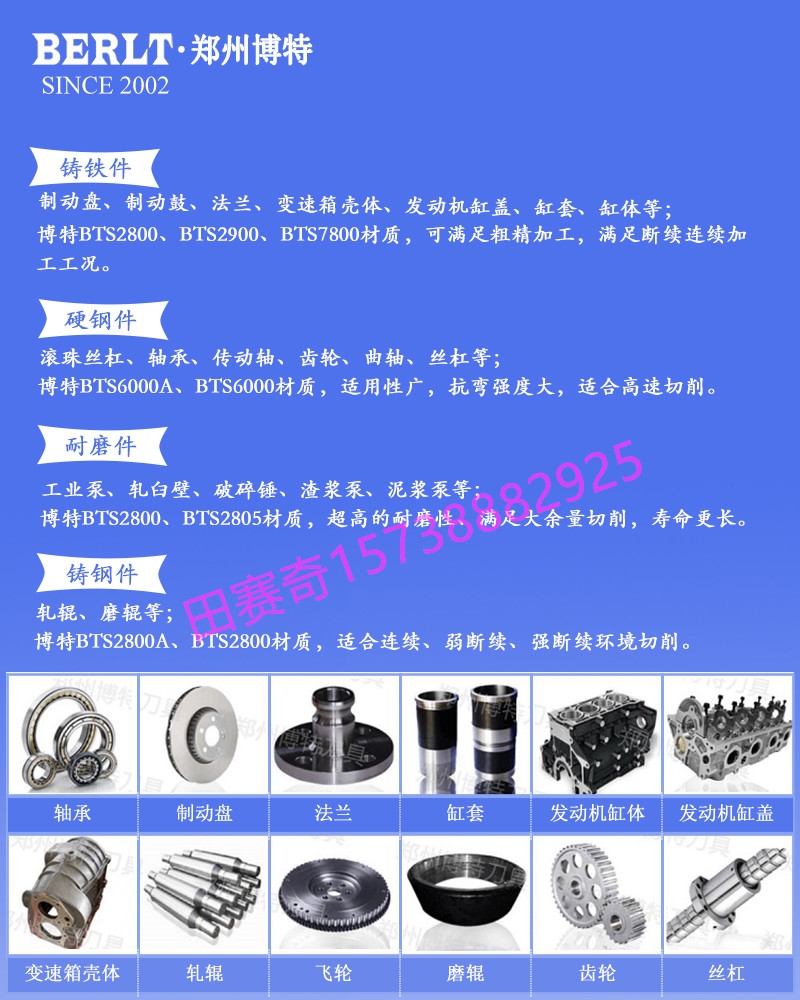 为了适应上述要求,郑州博特超硬刀具积极研发生产满足铸铁缸套、低钛缸套的刀具,经过粗、精加工过的气缸套的品质及性能得到了大幅度提高,有效地控制了气缸体的受力变形,大大降低了气缸体与气缸套之间的磨损。缸体与缸套之间的磨损减小,保证了发动机动力的有效输出,提高了发动机的效率,降低了油耗,同时控制了发动机的噪音,取得了明显的使用效果及社会效益。