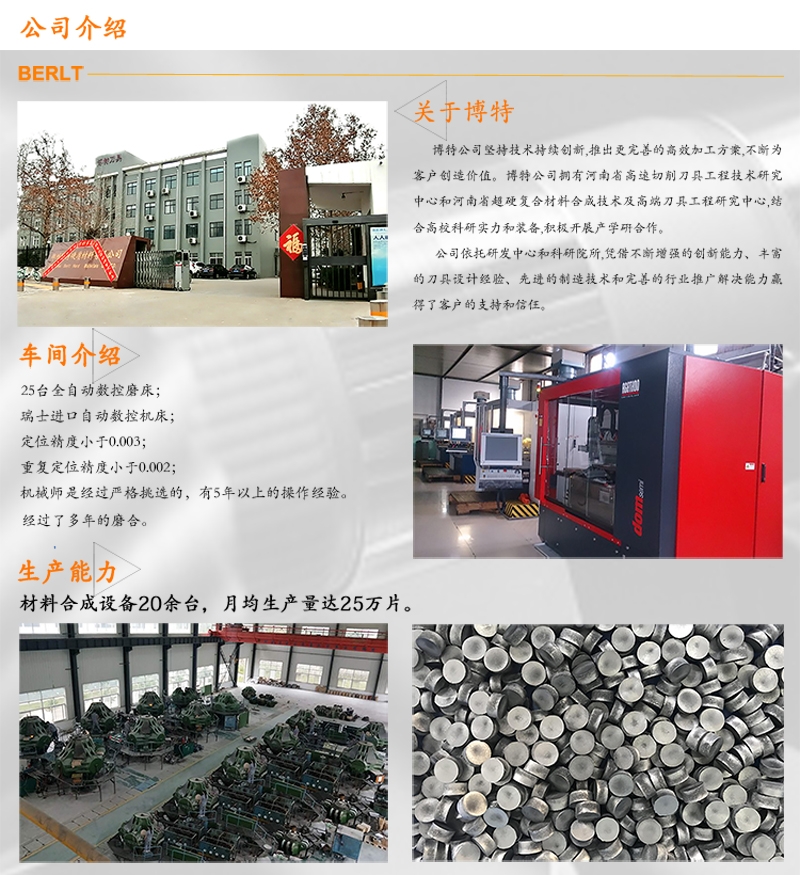 郑州博特硬质材料有限公司拥有河南省高速切削刀具工程技术研究中心和郑州市超硬复合材料刀具工程研究中心,二十年来专注超硬刀具制造技术和市场推广应用,致力于PCBN刀片以及金刚石砂轮的制造和销售,持续为国内外高端制造业提供高速、高效、绿色加工解决方案和高端精密PCBN刀具,助力工业4.0。