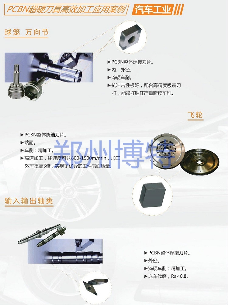 郑州博特材料专注于超硬刀具的研发制造,秉着为制造商提供原材料,为经销商提供产品,为用户提供服务的经营理念,为客户提供各种结构形式的PCBN刀片,包括整体烧结PCBN刀片、整体焊接PCBN刀片和复合焊接PCBN刀片,以满足各类加工环境需求。多种规格型号齐全,量大从优,欢迎咨询。