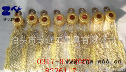 泊头致远防爆手拉葫芦:是一种特殊的安全工具,主要有两大类:铝青铜材质和铍青铜材质,我公司生产的防爆手拉葫芦防爆性能符合**GB10686-89标准。以铝青铜、铍青铜作为毛坯,手拉葫芦外壳采用H62铜合金材料。