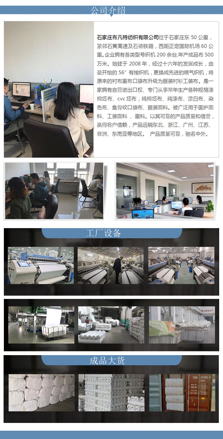 布凡特 涤棉布 T80/C20 45*45 133*72 工作服面料 工装布 平纹面料